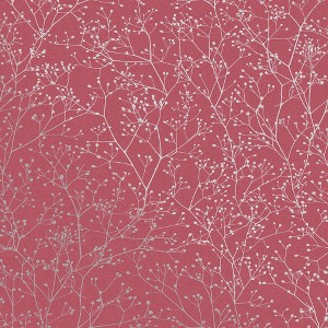 A full roll of this product is 20.5 inches wide and 396 inches long. A full roll can cover up to 56 square feet depending on the design match and pattern repeat. A sample of this product is 8 inches by 11 inches. TheGypsophila Wallpaperfeatures a raspberry pink background with branches of elegant seedheads screen-printed in silver metallic onto fibrous paper. The result is a beautiful botanical wallpaper with a lovely tactile texture. Clarissa spotted the bouquet that inspired this design at Blackshed flower farm in Dorset, and it still hangs from her studio ceiling in London today. This wallpaper would make the perfect addition to any living space. Offers a smooth, untextured finish. Straight match with a 25.2 inch pattern repeat.