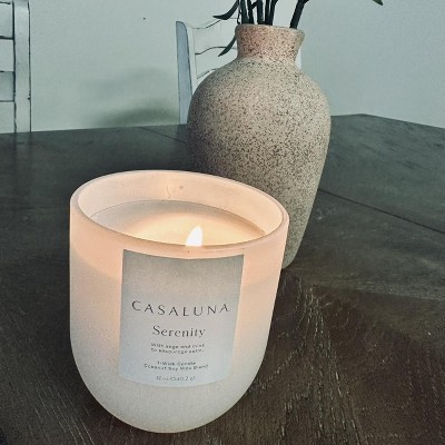 Transform your space into a spa with the Frosted Glass Jar Candle from Casaluna™. Featuring a classy frosted glass jar to elevate the charm, this scented candle looks beautiful on tabletops and is made from soy wax, coconut oil, and paraffin wax.
