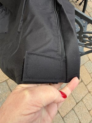 [This review was collected as part of a promotion.] This cover is sturdy and looks great on my heater- I love that it has both a zipper and Velcro to close for a secure fit. Water resistant and looks great with the black fabric, gives me piece of mind for the winter months. We use our heater through November then not again till May so this cover is the perfect addition to our patio to keep the heater safe and dry. The black fabric matches our umbrella covers as well so our patio looks coordinated all winter! Love it!
