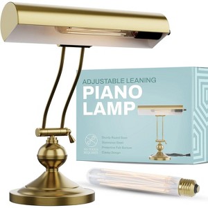Enhance your workspace with the Home Intuition Classic Antique Retro Adjustable Leaning Piano Lamp. Its Brushed Brass finish and adjustable metal shade offer a timeless aesthetic that complements any desk or piano. Designed for versatility, it accommodates up to 40-watt T10 bulbs and is LED compatible, providing optimal lighting for reading or playing music. The sturdy round base ensures stability, while the adjustable arm allows you to direct light precisely where needed. Elevate your décor with this elegant and functional lighting solution.