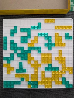 - The Blokus game ends when no more pieces can be placed down, and the player with the lowest number remaining wins
