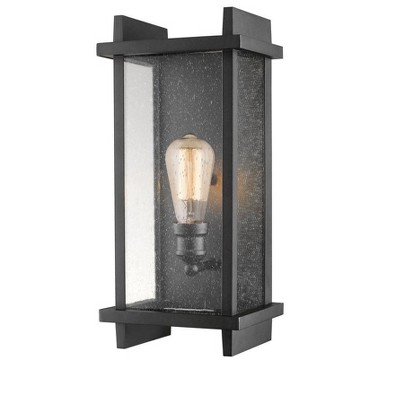 With its sturdy dual frames encasing uniqueseedy glass panels, this flush mount exudes a classic craftsmen style that is bold yet charming. Available in Black or Oil Rubbed Bronze, these fixtures will accent any outdoor setting. Outdoor Living/Deck/Patio Shade Included: Yes Dimmable: Yes Material: Aluminum, Finish Color: Black, Width: 10", Height: 5.88", Hanging Method: Flush, Lamping Type: Incandescent, Number Of Bulbs: 1, Wattage: 100 Watts, Dimmable: Yes, Moisture Rating: Damp Rated