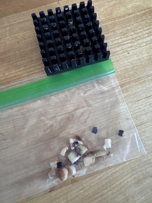 The black plastic gaurd filed off in the cutter and these plastic shavings were mixed in with the potatoes. So dangerous!