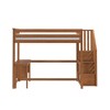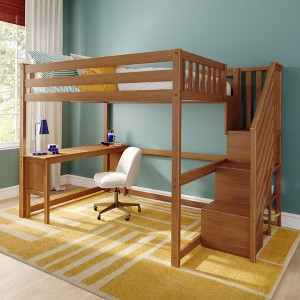 Get a chic sleep and study space without sacrificing floor space with the Full Loft Bed With Desk and Stairs from Max & Lily. Clean modern lines and neutral finishes give this bed a classic look that works with any decor or style. The desk attaches easily to the loft for the perfect reading or study area and can be used outside or underneath the bed. Tall, 13.5-inch guard rails provide ample sleep security. Sturdy steps with anti-slip steps provide easy and comfortable access to the loft. The staircase can be installed on the left or right side, so the bed can perfectly fit your space. Built into the side of the staircase is three cubbies, making for easy, simple storage. The included desk is perfect for studying and can be attached underneath or on the outside of the frame. The clean, low-VOC finish is easy to maintain. Flush, color-matching hardware maintains the clean look. Knot-free, solid pine wood construction plus strong plywood slats and metal support bar provide a high 400-pound weight capacity. Accommodates standard full-size mattresses up to 8” in thickness and does not require a box spring or bunkie board. This bed meets or exceeds federal safety standards for children's furniture. Instructions, slat roll, tools, and required hardware are included. 2+ adults make assembly easier. Bed ships in two boxes and is heavy due to solid wood construction. Mattress and bedding not included. With quality, style, and affordability, you will enjoy this full high loft bed for years to come.