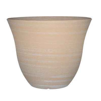 Classic Home and Garden Indoor/Outdoor Round Honeysuckle Resin Flower Pot Planter, Beige, 15in