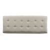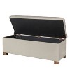 Add style and spacious storage to any room with this classic long storage bench. Featuring button tufting, this storage bench has wood legs. This multifunctional bench can provide seating and double as a coffee table, serve as an end of bed bench or as an entryway bench with storage. Premium details include a hinged lid and a generous storage capacity. Easy to assemble and maintain. Please note that fabric and wood colors may appear slightly different due to variations in lighting or screen settings.