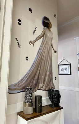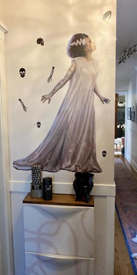 Classic monsters fans will definitely enjoy this officially licensed Universal Monsters The Bride of Frankenstein wall decal. This Bride of Frankenstein decal is perfect for Halloween decorating or, if you are indeed a true monster fan, year-round. Included are a bunch of smaller bonus decals that can be placed around your Universal Monster Bride of Frankenstein decal or onto any smooth surface. The decorating possibilities are endless. Made with a high-quality vinyl and an adhesive that won t leave residue behind, you can remove these peel and stick wall decals and reuse them the next year (simply place them back on the original liner sheet). Look for the entire line up of Universal Classic Monsters Wall Decals from RoomMates and collect them all!