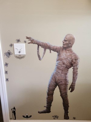 I've been on the hunt for some easy decor to spruce up my house on during the spooky season and the mummy decal really fit the bill. It was fairly easy to apply, I recommend starting with the right foot (as you look at the wall). I was able to peel it multiple times to adjust for perfection, with no damage to my wall or the decal. It is based off the movie, so it had some movie themed decal, they didn't fit the theme I wanted and felt out of place so I didn't use them, but there was an abundance of others and I was very happy. I loved the many and varying sizes of scarab beetles. Definitely recommend!
