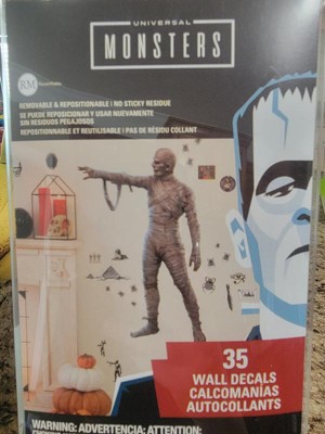 This officially-licensed giant Mummy Wall Decal from RoomMates is guaranteed to bring big thrills to classic monster fans of all ages. Now you can put this iconic Imhotep character on your walls to decorate for Halloween or year-round (if you re a true monster lover)! Made with a high-quality vinyl and an adhesive that won t leave residue behind, you can remove these peel and stick wall decals without being haunted by their former presence. The Mummy giant wall decal from RoomMates is part of a complete line-up of Universal Monsters wall decal collection. Collect them all for the ultimate Universal Classic Monsters fan room!