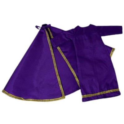 • The long-sleeve dress shirt features a purple and maroon stripe pattern, finished with decorative buttons for a polished look while the hidden Velcro closure underneath makes dressing easy.