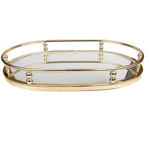 Classic Touch Gold Oval Mirror Tray 16"L