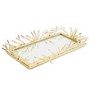 Lustrous and sleek, this rectangular tray is defined with the gold design gracing its border. You can use it as a wine tray ,with glasses and bottles situated on it. Or, it is useful for serving cakes and pastries at the end of a meal. The finish of this piece is so grand, indicating the premium quality material of which it was created from.