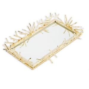 Classic Touch Rectangular Decorative Mirror Tray with Gold Design Border