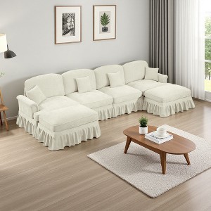 - ¡¾Buy 1 Sofa get 2 Styles¡¿ Setting up this cloud couch with detachable ruffles pleats skirts for couch and ottoman is incredibly easy. By adding the skirts or remove the skirts, it presenting two different looks before and after removal, equivalent to owning two sofas styles. The ruffles can stay with the couch/ottoman to add more elegant look to your renovation, or it can be removable to become a mid-century / transitional couch.