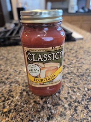More cheese, more mmm's and ahh's around the table. Classico Four Cheese Pasta Sauce is easy to prepare and offers a rich, flavorful taste. Made with real ingredients, our sauce features a rich blend of ricotta, Provolone, aged Parmesan and Romano cheese. Simply simmer and serve our sauce with your favorite dish. Use our pasta sauce in a classic spaghetti and meatballs dish or a pasta casserole, on your homemade pizza, or as a dipping sauce for garlic bread. Be sure to refrigerate our 24-ounce jar of sauce after opening. Classico pasta sauce has a flavor for everyone in your family, from Four Cheese Pasta Sauce to Tomato & Basil Pasta Sauce. Make it yours, for your homemade dish.