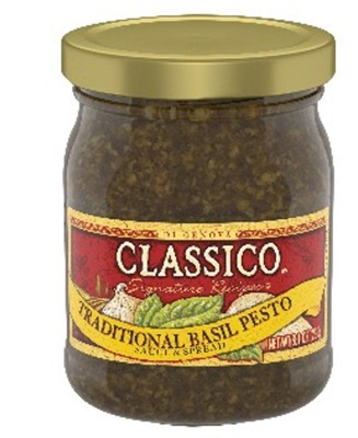 - One 13.5 oz jar of Classico Signature Recipes Traditional Basil Pesto Sauce & Spread