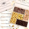 - GREAT ASSORTMENT: Slip off the ribbon, open the cover, and enjoy the assortment of treats including Chocolate covered almonds, Caramel Taffy Squares, Chocolate Rainbow Nonpareil candy, Gourmet Caramel Popcorn, and Chocolate Mint Cremes.
