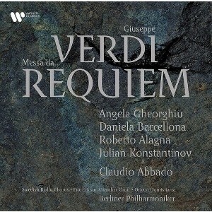 Claudio Abbado had only made a very few recordings for EMI Classics (now Warner), including Mozart's Flute Concertos with Emmanuel Pahud. This live rendition of Verdi's Messa da Requiem is definitively a major modern version of the work. In 2001, Abbado was doing his. In 2001, Claudio Abbado was soon to complete his tenure as Chief Conductor and Artistic Director of the Berliner Philharmoniker, when he was diagnosed with stomach cancer not long before. Nonetheless, he was able to conduct this Verdi Requiem during two concerts that held a special significance, offering us a remarkable modern interpretation of the work. It featured an outstanding quartet of soloists, three of the world's most renowned choirs, and Berlin's iconic orchestra. "EMI was quite right to be on hand to record this performance in Berlin at a time when Abbado had arisen from his sick-bed to show just how much this work meant to him in the circumstances. It's conveyed in spades through the tremendous concentration and emotional thrust felt throughout this shattering interpretation. This performance has something extra that you find in Fricsay's live, 1960 account, and both come close to the spiritual element in the music. Abbado has at his bidding a superb group of specialist choirs who combine effortlessly into a cohesive whole, singing with commendable breadth, accuracy and involvement, few if any better on disc. They find fit counterparts in the players of the BPO who seem individually, in solos, and collectively intent on giving of their appreciable best for their chief. So all the big choral moments, Dies Irae, Rex tremendae, Sanctus, Libera me fugue are superbly achieved. EMI's recording is wide-ranging and immediate, the equal of any the work has yet received. If the solo singing can't be given such an unqualified encomium, much of it is impressive, especially that of the young mezzo Daniela Barcellona, even in tone and beseeching in manner. Gheorghiu does so much so well: she sings throughout in that rich, warm tone of hers and offers many long, arching phrases. She's also as dramatic as one could wish in the Libera me (...). Alagna sings with a deal of passion and authority. (...) Given it's superlative sound and special circumstances, [it] is an important addition to the work's discography." The Gramophone Classical Music Guide