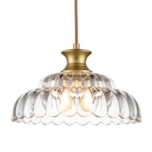 Boasting a gold finish, the gold pendant light fixture livens up your home with a boost of sparkle. The light fixture’s layered scalloped clear glass shade gives your living space a dose of whimsy and artistic charm. Its glistening finish contrasts the scalloped glass shade, adding charisma and drama to the space. The amazing texture of the glass shade is the perfect finishing touch for your home. It allows the light to gently filter through the clear glass shade and cast intricate shadows. It adds depth and character to the space, creating an alluring eye appeal. It is sloped ceiling adaptable and comes with a 47.2-inch adjustable gold hanging cord.