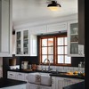The black barn ceiling light's canopy sports a dark gray finish, lending an understated elegance. Its metal barn shade protecting the opal glass globe boasts a rustproof black finish. Its mix of finishes encompasses both a dash of drama and a touch of modernity, yet maintains an industrial edge.