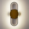 The modern LED wall sconce's oval lamp body and rounded canopy flaunt a rustproof white finish, adding a touch of urban sophistication to your interior. It shows off a simple but edgy design as an energy-efficient wall light. One oval and one circle in wood grain finish in the middle are put together to present a minimalist yet whimsical look.