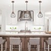 Wrapped by a wire cage, the glass shade delivers a farmhouse appeal to your aesthetic.