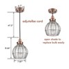 The glass globe pendant light’s canopy, wire cage, and lamp holder are characterized by an antique red copper finish, sending out a rustic charm to your interior.
