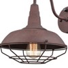 The gooseneck wall sconce flaunts a rusty dark brown finish, conveying an antique charm to your living space. The wall sconce’s exquisitely welded metal barn shade delivers a farmhouse charm to your home decor. Crafted from solid metal, the wall sconce is durable and rustproof. It is an appealing addition to your space with its pastoral style.
