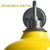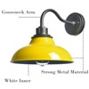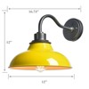 The gooseneck wall sconce's barn shade shows off a yellow finish while its canopy, gooseneck, and lamp holder flaunt a dark gray finish. The interior of the barn shade is coated in a white finish. A mix of finishes encompasses both a dash of drama and a touch of rusticity, yet maintains an industrial edge. Its yellow lampshade gives your home a snappy look and a glamorous, refreshing vibe. The white interior of the lampshade helps reflect the light. It sports a durable yellow finish and a barn shade to bring a touch of factory vibe to the interior. Its yellow finish contrasts the dark gray finish and the white interior of the lampshade, adding an alluring eye appeal to the space.