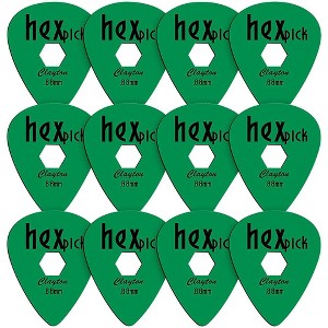 Get some control over pick with a Hexpick. The hexagon hole in the pick locks the pick in place, but still allows to move the pick if needed. This unique design is extremely comfortable and will help keep playing at its best. This pick is made of Duraplex material and is built to last. Standard size with multiple gauge sizes. 12-pack.
