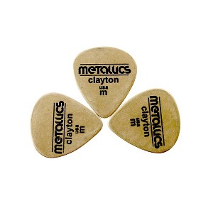 Metallics Standard Pick 3-Pack brings the durability of metal to guitar picks. With 3 different metals to choose from, can decide for self what want from picks. Metallics CopperCopper creates an impressive sharp tone while playing. Copper, being a softer material, will not wear down the coating of phosphor bronze or Nickel found on guitar strings. Each pick is tumbled extra long to insure the edges are consistently round for faster release from strings. As this is a metal guitar pick, Clayton recommends guitar surface has a pickguard. Metallics Stainless SteelStainless steel will last a lifetime and never corrode. It makes for an incredibly hard guitar pick and provides a clear, bright tone. Each pick is tumbled extra long to insure the edges are consistently round. Rounded edges help to minimize the string wear. As this is a metal guitar pick, Clayton recommends guitar surface has a pickguard. Metallics BrassBrass picks create a vivid, bright, and clear tone. These incredibly stiff, durable picks will last through the toughest play. If are looking for a pick to create smoking pick slides, then these fit the bill. Each pick is tumbled extra long to insure the edges are consistently round for faster release from strings. As this is a metal guitar pick, Clayton recommends guitar surface has a pickguard.