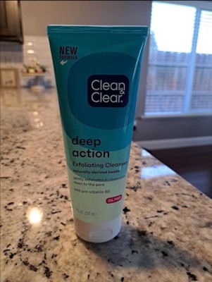 - Clean & Clear Oil-Free Deep Action Exfoliating Facial Cleanser with Pro-Vitamin B5 for soft skin