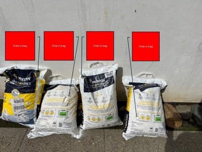 Purchased 8, 4 bags have holes and must be returned. Driver made a huge mess and left salt from the curb to my door. And wait for it, the FedEx driver used a cart to move the bags and RAN OVER A PLANT.