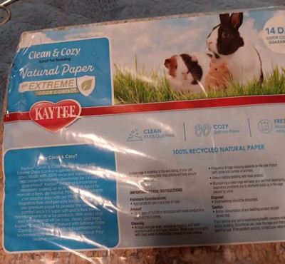 [This review was collected as part of a promotion.] The Kaytee Clean & Cozy Natural Paper with Extreme Odor Bedding is a game-changer for pet owners. This bedding effectively controls odors, keeping the pet's living space fresh and clean for an extended period. Its natural paper composition is safe and comfortable for small animals, providing them with a cozy environment to nest and burrow. The bedding is highly absorbent, minimizing mess and reducing the frequency of cage cleanings. Overall, it's a top-quality product that earns a well-deserved 5 stars for its odor control, comfort, and convenience.
