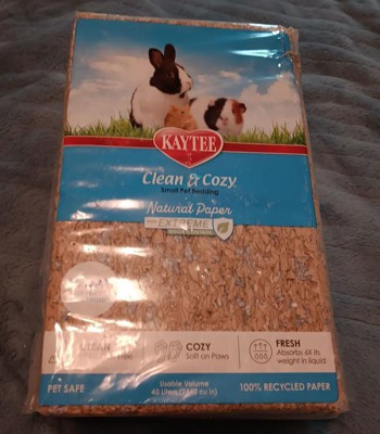 [This review was collected as part of a promotion.] Kaytee Clean and cozy paper is perfect for my bunny! She loves it and can’t get enough. It’s super easy to clean as well and the smell is very clean. I love that’s it’s also eco friendly and the packaging is easy to open.