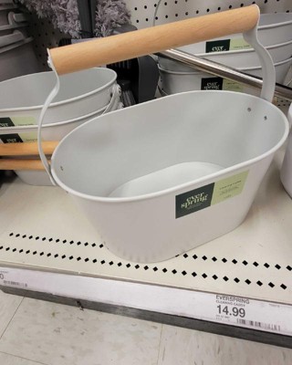 A: The cleaning caddy has a clean white finish.