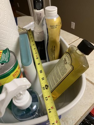 A: Hello Mindyluu - We appreciate your interest in this Cleaning Caddy. The overall dimensions of this item are 7.12 Inches (H) x 11.53 Inches (W) x 14.56 Inches (D). We know you will enjoy it. – Joe