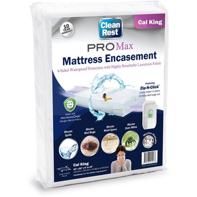 CleanRest Mattress Encasements are trusted by the World's Finest Hotels and are now available in your home! Our Patented MicronOne Waterproof Fabric is hypoallergenic and protects your bed from allergens, dust mites, mold spores and bacteria, ensuring a healthy and clean night's sleep. The fabric is 50% more waterproof than leading competitors based on independent lab testing, and provides an extra layer of protection against spills, incontinence and pet issues. You can sleep soundly knowing that our Patented Zip-N-Click closure system will lock out bed bugs. Our Deluxe EZ Stitch Sidewalls make it easy to install your encasement and remove it when laundering and provide a quiet night's sleep due to a perfect fit on the mattress. The CleanRest encasement is lab tested to provide 140% more breathability, which means you get all the benefits of waterproof protection without the hot, sticky, sweaty, noisy feel associated with other waterproof fabrics. For ease of care, our encasements are Machine Washable, and we recommend allergy sufferers wash on the highest heat setting. Crafted with precision and tested rigorously, we stand by our products and offer a 5-Year Manufacturer’s Warranty.