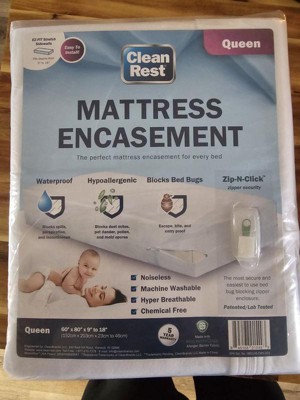 CleanRest Mattress Encasements are trusted by the World's Finest Hotels and are now available in your home! Our Patented MicronOne Waterproof Fabric is hypoallergenic and protects your bed from allergens, dust mites, mold spores and bacteria, ensuring a healthy and clean night's sleep. The fabric is 50% more waterproof than leading competitors based on independent lab testing, and provides an extra layer of protection against spills, incontinence and pet issues. You can sleep soundly knowing that our Patented Zip-N-Click closure system will lock out bed bugs. Our Deluxe EZ Stitch Sidewalls make it easy to install your encasement and remove it when laundering and provide a quiet night's sleep due to a perfect fit on the mattress. The CleanRest encasement is lab tested to provide 140% more breathability, which means you get all the benefits of waterproof protection without the hot, sticky, sweaty, noisy feel associated with other waterproof fabrics. For ease of care, our encasements are Machine Washable, and we recommend allergy sufferers wash on the highest heat setting. Crafted with precision and tested rigorously, we stand by our products and offer a 5-Year Manufacturer’s Warranty.