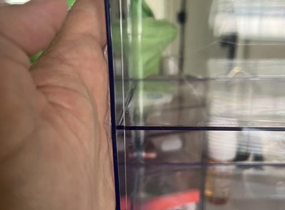 I was so excited about these. I have so many things from this brand and love them. They are unfortunately super flimsy and scuffed up despite coming shrink wrapped. I got them from the store so there was no damage in transit to my home. Both of the units I got are damaged in the same ways and bent on the bottom right corners. There are also very weird lines on the back of them (and a similar one I got) which is just an aesthetic thing but worth mentioning. Doors don’t slide well even when they’re empty so I can’t imagine with them being full. They fell out of the “track” easily too. Stackable but would not hold up. Overall incredibly disappointed with this. If it had just been one of them I would think it was just a damaged one but they both have the same flaws.