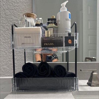 Love this tray! It’s lightweight but sturdy, and the ribbed detail makes it look really chic. The clear acrylic goes with everything, and the tiers are the perfect size for facial items and perfume. Super versatile and stylish!