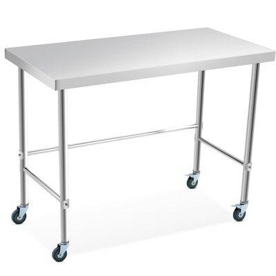 Enhance your workspace with this premium stainless steel commercial work table, designed for maximum durability and versatility. The smooth, rust-resistant work surface supports demanding kitchen, restaurant, garage, or outdoor jobs. An adjustable undershelf offers ample storage, while four 360¡ã swivel casters ensure easy maneuverability and secure placement. Rounded corners provide added safety, and the simple assembly requires no extra tools. Perfect for any prep, storage, or utility needs in both professional and home environments.
