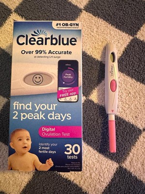 With Clearblue Digital Ovulation Tests, you can accurately identify your 2 most fertile days to maximize your chances of getting pregnant naturally. Each ovulation test kit includes 1 digital reader and 30 individually wrapped ovulation test sticks that track LH (luteinizing hormone), the hormone that surges just before you ovulate. The test sticks have an absorbent tip that can be used directly in your urine stream or dipped into a sample of urine in a clean, dry container. When you see that digital smiley face in the result window, you know it's your best time to try for a baby.