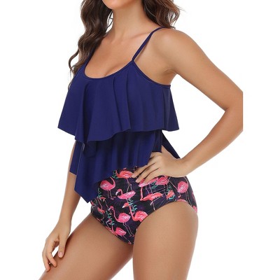 Clearlove Maternity Swimsuit Two Piece Bikini Bandeau Top Hipster Bottom High Waisted - Royal blue,M