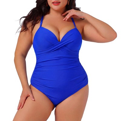 Clearlove Plus Size Swimsuits One Piece Square Neck Bathing Suits Drawtring Strappy Swimsuits Liquid Marble Print Classic Tank Swimsuits, Blue - 4X