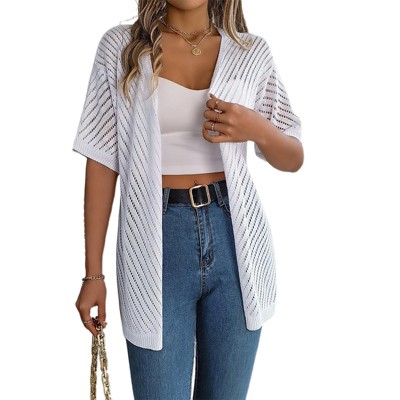 Embrace the fresh spring styles with this 2026 Pointelle Knit Cardigan for Women, featuring an elegant open front design perfect for layering over your favorite outfits. The intricate pointelle knit pattern creates a beautiful hollow-out effect that adds texture and visual appeal while maintaining a lightweight feel. This short sleeve sweater cardigan offers versatile coverage that works well during transitional weather months. Made from 100% viscose, the fabric feels soft and breathable against your skin, providing comfortable wear throughout the day. The open front allows for easy styling over tank tops, dresses, or blouses, making it a practical addition to your wardrobe. Available in multiple color options to suit different preferences, this cardigan drapes gracefully and moves with your body. The material maintains its shape and quality with proper care, feeling gentle on your skin during extended wear. For maintenance, we recommend washing in a laundry bag using a gentle machine cycle or hand washing to protect the delicate knit pattern and fabric structure. Whether you're attending brunch, shopping with friends, or enjoying outdoor activities, this cardigan provides the perfect balance of style and comfort for your spring fashion needs.