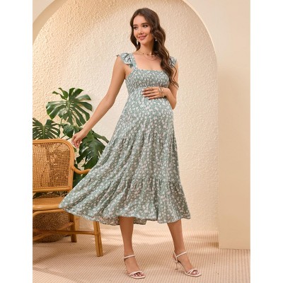 • SMOCKED MIDI DRESS: We love this smocked sumemr dress with flowy tiered midi skirt.The smocking at the top has good stretch to accommodate varying bust sizes,and the playful ruffle tiered skirt is relaxed fit,it could be a comfy Maternity Dress for Baby Shower