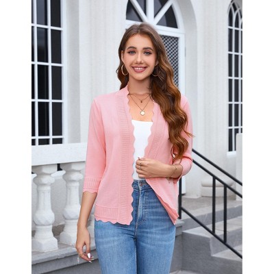 Clearlove Women's Cardigan Soft Pocketed Long Sleeves Casual Knitted Open Front Cardigans Lightweight Sweaters Pink XXL