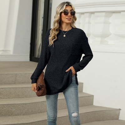 Product Name: Clearlove Womens Oversized Sweatshirt Loose Tunic V Neck Striped Sweatshirt Fall Long Sleeve Pullover Tops - Black,X Large