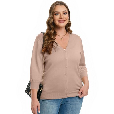 Clearlove Womens Plus Size Cardigan Casual 3/4 Sleeve Waffle Knit Duster Open Front Tops,Light coffee,5XL